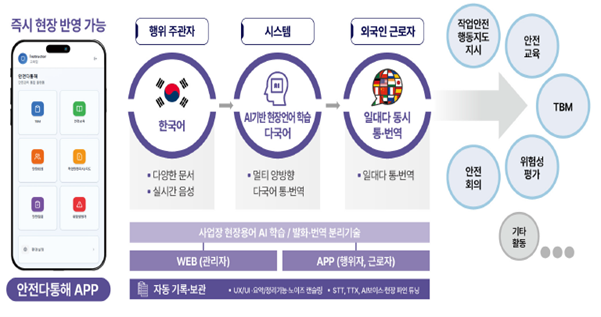 또한 TBM과 연계해 작업 전 안전수칙 공유 및 교육 이행 여부를 체계적으로 관리할 수 있으며, 외국인 근로자가 없는 국내 현장에서도 교육 이력 관리 및 운영 효율 향상을 위한 도구로 활용 가능합니다.