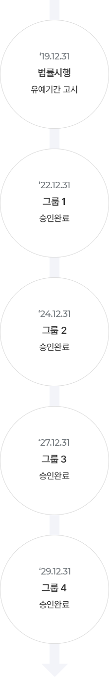 기존 살생물물질에 대해서는 승인에 대한 유예기간을 얻기 위해 신고가 필요합니다. 신고 이후 제품유형별로 순차적으로 살생물물질 승인을 받습니다. 신규 살생물물질은 유예기간 없이 제조, 수입전에 승인을 받아야 합니다.
