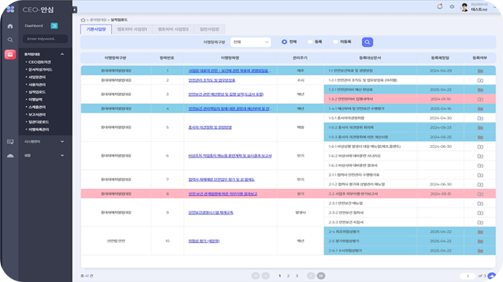- 이행 항목별 스케쥴링 제공을 통한 사업장의 빈틈없는 관리 체계 마련